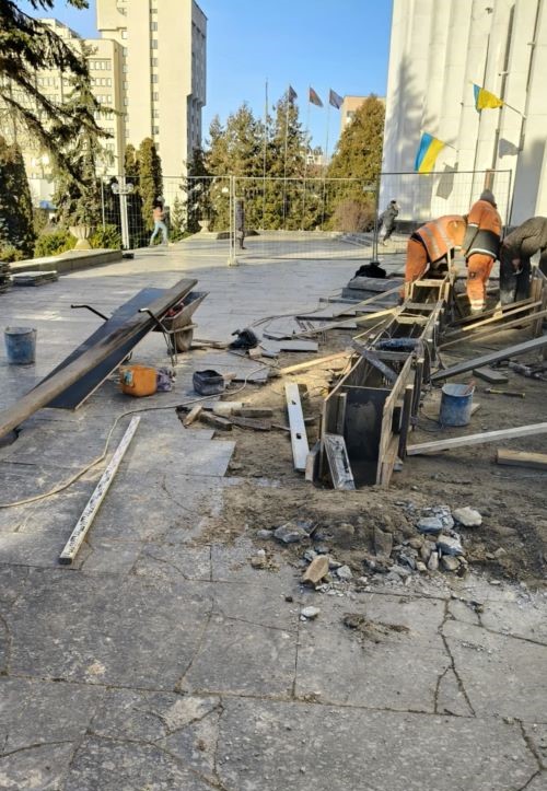 Від себе тільки додамо світлини, на яких видно, що і на цей обєкт завезли бруківку фірми “Брук-тон”.