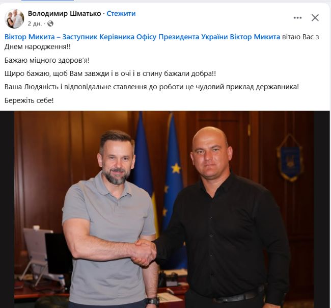 Перед черговим відльотом у США міський голова Чорткова Володимир Шматько, відомий своєю колекцією світлин з високопосадовцями, у фейсбуці публічно похвалився знайомством з заступником керівника ОП і привітав того з днем народження, “розсипавшись” в підлабузницьких реверансах.
