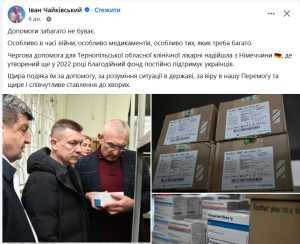 Адже як тільки медикаменти привезли до обласної клінічної лікарні, туди одразу примчали народний депутат від “За майбутнє”, скандальний фермер Іван Чайківський зі своїм посіпакою, не менш скандальним заступником голови Тернопільської обласної ради Володимиром Болєщуком.