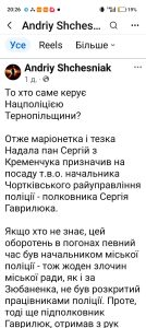 Призначення Сергія Гаврилюка т.в.о. начальника Чортківського райуправління поліції викликало резонанс після допису журналіста Андрія Щесняка, який поставив просте запитання: хто реально впливає на кадрову політику поліції Тернопільщини? Але проблема не лише у самому призначенні. Проблема — у його бекграунді.